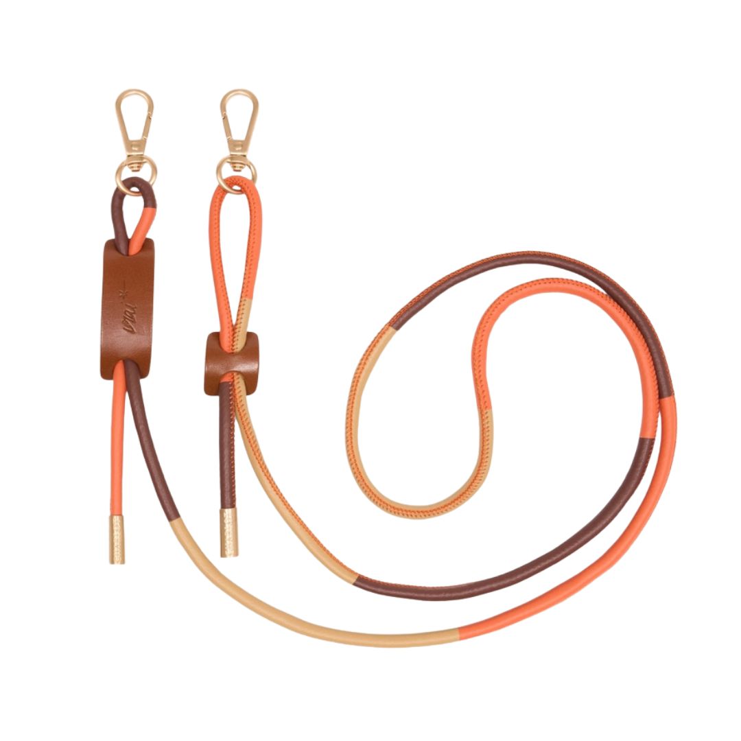 A warm pumpkin-toned leather phone cord, entirely handmade in France. Lightweight, adjustable and effortlessly elegant — designed to carry your phone beautifully, hands-free.