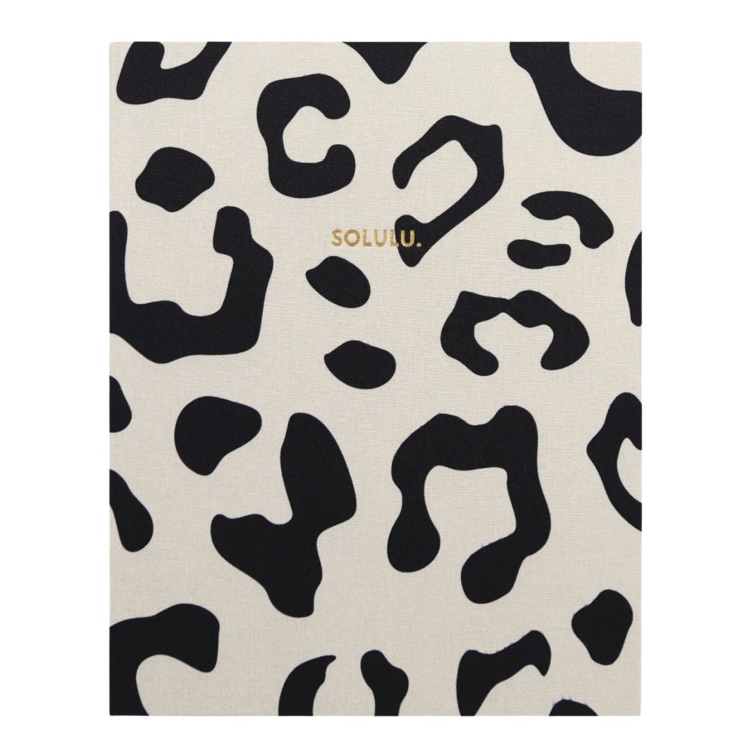 Crafted from recycled solidboard and finished with art-paper sides and a printed linen cover, this book looks luxurious from every angle. The beige fabric base contrasts beautifully with the black leopard print and gold-foil logo. Together, they create a refined yet daring look that suits any modern interior.
