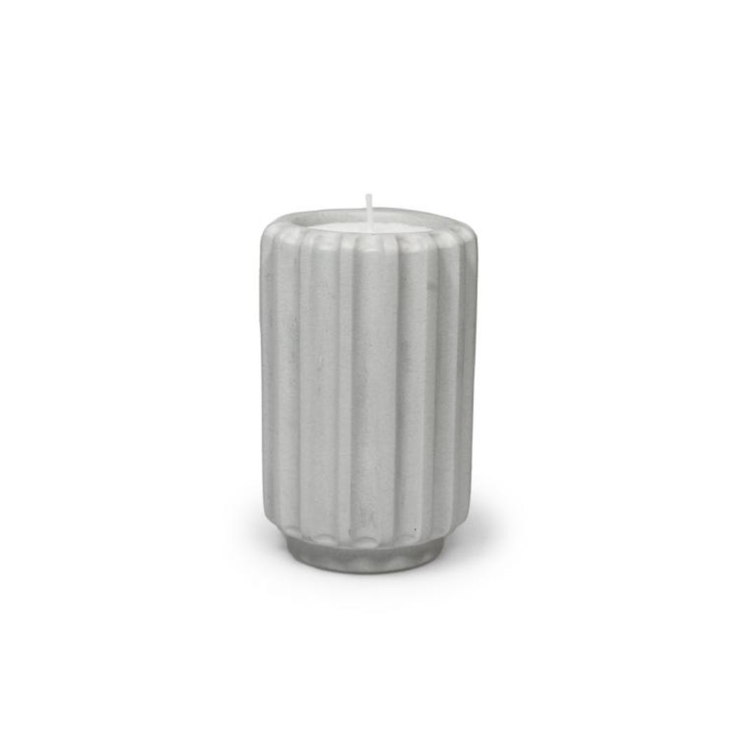 This light candle holder is made from cement, which gives it a solid and high-quality feel. At the same time, the Silk colour softens the material and keeps the overall appearance light and timeless.
