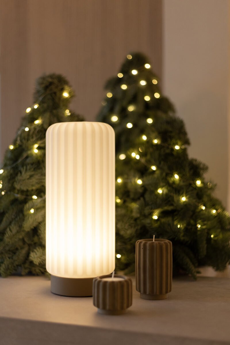 Available in three tasteful colors, this T-light holder can easily be styled solo or in sets. Whether you mix and match shades or pair it with the matching Dentelles table lamp, the result is always charming and atmospheric.